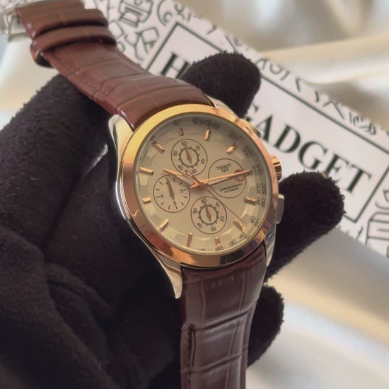 This sophisticated timepiece features a chronograph function, allowing you to accurately track and measure time with ease.